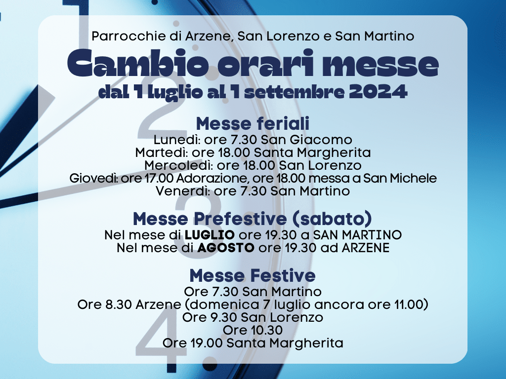 ore 18.00 Arzene (San Michele) – Il martedì a Santa Margherita, il mercoledì a San Lorenzo